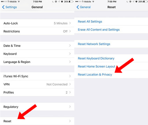 ● Standort und Datenschutz zurücksetzen. Klicken Sie nacheinander auf [ Einstellungen ], [ Allgemein ], [ Zurücksetzen ] und [ Standort und Datenschutz zurücksetzen ]. Sobald die Einstellungen wiederhergestellt sind, kann die App nicht mehr auf Ihren Standort zugreifen, bis Sie sie erneut autorisieren.